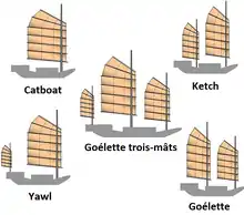 La plupart des navires à voiles sont classés en fonction de leur nombre de mats et leur plan de voile[1]. Ainsi, la nomenclature et les dénominations des différents types de voiliers sont définies par la nature des gréements[2].