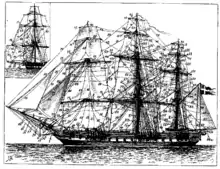Une polacre (polacre en anglais) est un ancien type de voilier méditerranéen de gréement variable[9] mélangeant phare carrés et mât à voiles triangulaires. Généralement à voiles carrées (et mât à pible)[10], certaines sont gréées en chébec, tandis que d'autres portaient des voiles auriques sur des antennes, très rarement des rames[10]. Elles sont équivalentes aux pinques à la différence que sur les pinques les voiles latines prédominent, alors que sur les polaires, on observe une forte proportion de voiles carrées.