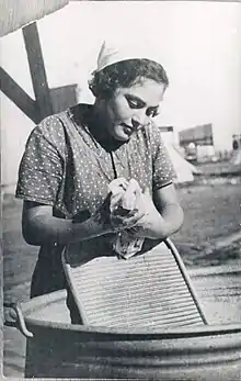 De nombreuses parties du monde utilisent encore des planches à laver pour laver les vêtements[2]. Les vêtements sont trempés dans de l'eau chaude savonneuse dans une cuve ou un évier, puis pressés et frottés contre la surface striée de la planche à laver pour forcer le liquide de nettoyage à travers le tissu et enlever la saleté. Des planches à laver peuvent également être utilisées pour le lavage dans une rivière, avec ou sans savon. Ensuite, les vêtements sont rincés. Le frottement a un effet similaire à celui de battre les vêtements et le linge de maison sur les rochers, une méthode ancienne, mais moins abrasive. Le personnel militaire utilise souvent des planches à laver pour faire sa lessive lorsqu'il n'y a pas de buanderie locale[3].