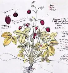 La botanique fit de grands progrès à partir de la fin du XVe siècle. Des herbiers artificiels furent imprimés dès 1475 ; en 1485 parut en Allemagne De Gart der Gesundheit de Johannes de Cuba, premier livre imprimé d'histoire naturelle. À partir de 1530 apparurent des ouvrages comportant des gravures sur bois conçues à partir de l’observation directe des plantes. C’est le cas des livres d’Otto Brunfels illustrés par Hans Weiditz (en) : Herbarum vivae eicones (1530-1536, en trois parties) et Contrafayt Kräuterbuch (1532-1537, en deux parties). 1533 vit la création de la première chaire de botanique en Europe, à Padoue. Luca Ghini (1490-1556), médecin et botaniste italien, fonda, en 1544, le jardin botanique de Pise (premier jardin botanique universitaire d’Europe) grâce à l'appui de Cosme Ier de Médicis et fit paraître son premier herbier, la même année. C’est à lui qu’on attribue l'invention de l'herbier (qu’on appelait hortus siccus, jardin séché), vers 1520 ou 1530. Son compatriote Ulisse Aldrovandi (1522-1605) assembla au milieu du XVIe siècle l'une des premières flores. Jacopo Ligozzi (1547–1627) travailla pour Ghini et Aldovrandi. Le chef-d'œuvre botanique de Pierandrea Mattioli est son Commentarii in libros sex Pedacii Dioscoridis qui paraît pour la première fois en 1544 orné de 500 gravures, et plus tard de 1200 gravures. Cet ouvrage impressionne le botaniste Gherardo Cibo (1512-1600), qui représente alors une partie des plantes figurant dans l'ouvrage de Mattioli (avec racines, fleurs et fruits) en gros plan devant un véritable paysage (souvent habité) figurant leur environnement naturel. Sur beaucoup des illustrations apparaissent aussi deux petits botanistes en train de prélever des échantillons de la plante illustrée. L'ouvrage (Pietro Andrea Mattioli, Discorsi, a herbal assembled and illustrated by Gherardo Cibo), daté de 1564-1584, est visible sur le site de la British Library[6]. Voir Wikipedia en anglais (et en latin pour voir deux illustrations supplémentaires).