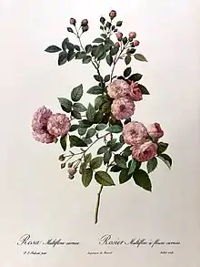 Pierre-Joseph Redouté (1759-1840), surnommé « le Raphaël des fleurs », fut peintre de Marie-Antoinette, travailla au Museum, partit à Kew, revint dessiner pour l'Académie des Sciences, fut le peintre de Joséphine de Beauharnais, puis donna des cours de dessin au Muséum. On lui doit un très grand nombre d’œuvres de première qualité. On peut signaler un catalogue de fleurs, Description des plantes nouvelles et peu connues, cultivées dans le jardin de J. M. Cels. Avec figures montrant des plantes exotiques cultivées par l’horticulteur Cels. L’auteur est le botaniste Etienne Pierre Ventenat. L’une des élèves de P-J Redouté fut (en)Henriette Vincent. Dans l'avant-propos de Les Roses, Redouté parcourt rapidement l'histoire de l'illustration botanique depuis l'Antiquité[24]. Il se concentre ensuite sur l'histoire de la représentation des roses[25].