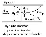 Une plaque à orifice ou diaphragme concentrique constitue le plus simple et le moins coûteux des éléments déprimogènes. Faisant fonction d'élément primaire, le diaphragme limite l'écoulement du fluide, ce qui engendre une pression différentielle de part et d'autre du diaphragme. Il en résulte une haute pression en amont et une basse pression en aval, proportionnelle au carré de la vitesse d'écoulement. Un diaphragme engendre habituellement une pression différentielle supérieure à celle des autres éléments primaires. Ce dispositif a pour avantage pratique de ne pas entraîner une augmentation importante du prix en fonction du diamètre de la conduite.