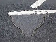 Cependant, on peut trouver, quoique plus rarement, d'autres formes, généralement carrées ou rectangulaires. La ville de Nashua au New Hampshire pourrait être un cas unique aux États-Unis d'Amérique pour ses plaques d'égout de forme triangulaire, qui pointent dans la direction du courant sous-jacent. Elles ont été fabriquées par une fonderie locale. La ville est cependant en train de les remplacer pour des formes plus classiques, car elles ne sont pas assez grandes pour les normes de sécurité modernes, et on ne trouve pas de plaques plus grandes en forme de triangle[5].