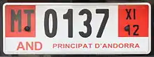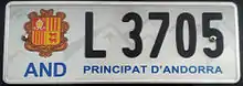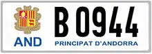 Andorre possède un système d'immatriculation depuis 1929. Le format andorran actuel date de 2011. Les plaques de la série courante sont blanches à caractères bleus. Elles comprennent cinq caractères, habituellement une lettre et quatre chiffres, mais les plaques personnalisées sont autorisées. Des séries différentes existent pour de nombreuses catégories de véhicules, par exemple les voitures du corps diplomatique et les voitures de collection. Les plaques portent les armoiries de l'Andorre et le sigle AND.