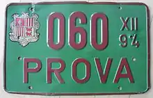 Les plaques provisoires pour automobiles et deux-roues ont quatre chiffres compris entre 0000 et 9999. Le cartouche gauche contient la mention MT, celui de droite l'année et le mois de fin de validité. Le mois est en chiffres romains, au-dessus des deux derniers chiffres de l'année en chiffres arabes[4].