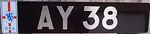 99999Aurigny utilise des plaques avec la mention AY puis un à quatre chiffres.AY 9999