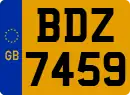 - Gibraltar utilise des plaques portant la mention G suivie de quatre chiffres et une lettre. Les plaques sont jaunes à l'arrière et blanches à l'avant.
