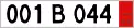 - une large zone à fond blanc, comportant trois « sous-zones » séparées par des espaces, sur lesquelles sont figurés des caractères alphanumériques en capitales :
