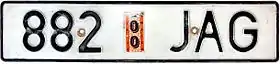 Plaque d'immatriculation actuellement en vigueur en Estonie.