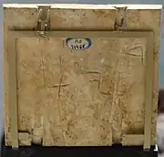Plaque représentant une scène d'inspiration égyptienne est exposée à partir de 2014 dans La Galerie du temps, une des expositions du Louvre-Lens[1],[2], où elle remplace la statuette Pazuzu, démon protecteur des vents et des démons mauvais (MNB 467)[3].