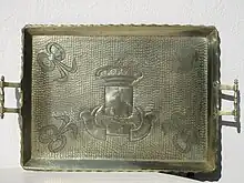 Plat rectangulaire en émaux de Longwy.