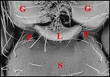 Comme les autres Theridiosomatidae,Wendilgarda mustelina arnouxi par exemple, elle possède une glande labiosternale caractéristique du groupe.