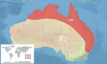 Cette espèce est endémique d'Australie. Elle se rencontre sur une vaste étendue qui s'étend de la région de Kimberley en Australie-Occidentale à la côte centrale de la Nouvelle-Galles du Sud, à travers le Nord du Territoire du Nord, le Nord et le Sud-Est du Queensland[1],[2].