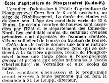 - Auteur non précisé, « École pratique d'agriculture de Plouguernével », L'Ami du cultivateur : journal hebdomadaire agricole,, (lire en ligne, consulté le ).