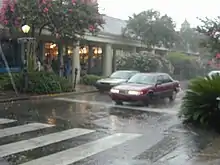 Les fortes pluies accompagnant un orage violent sont souvent appelées lames d'eau, du fait que les précipitations orageuses se déversent de façons violentes et donc donnant des inondations en quelques minutes. Elles laissent plusieurs dizaines de millimètres d'eau au sol. Généralement, 50 mm d'eau en une heure est le seuil où l'on considère que la pluie torrentielle sous un orage peut causer des dommages par des inondations immédiates ou dans les heures suivantes. Il faut cependant considérer la configuration du relief et la superficie couverte, en plus de la saturation des sols et du niveau d'eau dans les cours d'eau de la région.