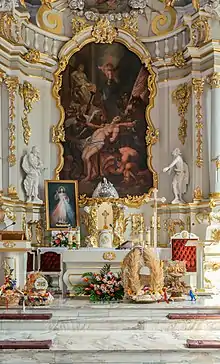 La place du marché et en arrière-plan, l'église Saint-Laurent. | |