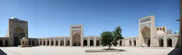 À la place de la mosquée construite par Arslan khan, au XVe siècle, est construite l'actuelle mosquée Kalon, achevée en 1514, comme l'indiquent les inscriptions sur la façade. L'ensemble prend son aspect actuel en 1536, lorsque Ubaid-Allah Shah fait construire une médersa sur les conseils de son confident Miri Arab Yemenski. Après la mort de ce dernier, on lui érige un tombeau dans la cour de la médersa Mir-i Arab, où repose également la dépouille d'Ubaid-Allah Shah.