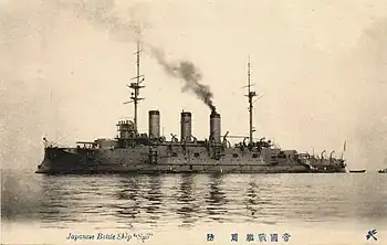 Au début de la Première Guerre mondiale, le Suwo fut le navire amiral du vice-amiral Sadakachi Kato lors du siège de la concession allemande de Qingdao, du au . Deux bâtiments de guerre de la Royal Navy, le cuirassé HMS Triumph et le destroyer HMS Usk (en) rejoignirent l'escadre japonaise composée d'un certain nombre de navires obsolètes. D'autres bâtiments de guerre japonais plus modernes, comme le transporteur d'hydravions Wakamiya, les cuirassés Kawachi et Settsu, et le croiseur de bataille Kongō, participèrent au blocus de la côte allemande.