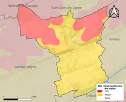 La commune est vulnérable au risque de mouvements de terrains constitué principalement du retrait-gonflement des sols argileux[32]. Cet aléa est susceptible d'engendrer des dommages importants aux bâtiments en cas d’alternance de périodes de sécheresse et de pluie. 99,6 % de la superficie communale est en aléa moyen ou fort (90,2 % au niveau départemental et 48,5 % au niveau national). Sur les 742 bâtiments dénombrés sur la commune en 2019, 736 sont en aléa moyen ou fort, soit 99 %, à comparer aux 91 % au niveau départemental et 54 % au niveau national. Une cartographie de l'exposition du territoire national au retrait gonflement des sols argileux est disponible sur le site du BRGM[33],[34].