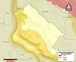 Le retrait-gonflement des sols argileux est susceptible d'engendrer des dommages importants aux bâtiments en cas d’alternance de périodes de sécheresse et de pluie[30]. 48,5 % de la superficie communale est en aléa moyen ou fort (59 % au niveau départemental et 48,5 % au niveau national)[Carte 5]. Depuis le , en application de la loi ELAN, différentes contraintes s'imposent aux vendeurs, maîtres d'ouvrages ou constructeurs de biens situés dans une zone classée en aléa moyen ou fort[Note 7],[31].