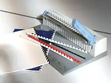 En papeterie et en bureautique la poinçonneuse de document est un appareil utilisé pour perforer les feuilles de papier:
