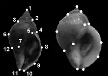 Points d'intérêt pour une analyse morphométrique d'un pourpre.