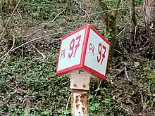 Les PK d'une voie sont souvent matérialisés à intervalles réguliers, ainsi qu'au niveau de certains lieux particuliers comme les ouvrages d'art, par des bornes ou des panneaux placés sur le bord de la voie.