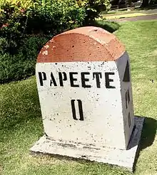 La plupart des îles de Polynésie française ont une route côtière qui fait le tour de l'île. Les PK sont les bornes kilométriques qui jalonnent cette route souvent à partir de la ville principale. À Tahiti, le PK 0 est la cathédrale Notre-Dame de Papeete. Chaque kilomètre est ainsi comptabilisé en partant vers l'Ouest et vers l'Est jusqu'à Taravao (qui constitue le PK 60 par le côté ouest et le PK 53 par le côté est). La presqu'île, Tahiti iti, possède aussi des PK qui ont comme point 0 le fort de Taravao. La même logique s'applique à Moorea (PK 0 au quai de Vaiare), à Raiatea (PK 0 à Uturoa), à Bora Bora (PK 0 à Vaitape)[1].