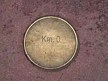 - Moscou : la plaque de bronze marquant le kilomètre zéro russe se trouve à Moscou, juste en face de la chapelle Ivère, dans un court passage reliant la place Rouge à la place du Manège et flanqué par le Musée national d'histoire et la Douma de la ville.