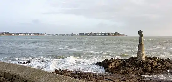 Elle est entourée de rochers au milieu desquels se dresse la statue de Notre-Dame de Kerdro (Bon Retour), taillée dans le granit et mesurant 2,70 mètres, sculptée par Jules-Charles Le Bozec.