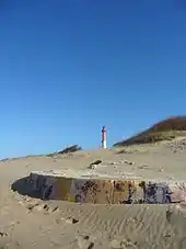 L'emplacement où se dressait l'ancien phare, détruit le , se trouve aujourd'hui à 1600 mètres au large, en raison du recul constant de la côte . Quant au phare actuel, volontairement construit à deux kilomètres de la côte en 1905, il n'est plus distant de l'océan que d'une centaine de mètres à marée haute[4].