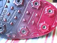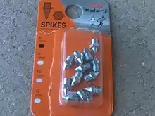 Il s'agit de jeu de pointes qui se fixent à l'aide d'une « clé ». Très souvent en acier, avec une forme pyramidale ou en aiguille, elles existent en plusieurs tailles : 4 mm, 6 mm, 9 mm, 12 mm, 15 mm, voire 17 mm. Plus celles-ci sont longues, plus elles correspondent à la pratique du cross-country avec des terrains boueux et herbeux par exemple, tandis que les courtes sont plus adaptées à la pratique d'épreuves sur piste. Elles ont une utilité proche de celle des crampons au rugby ou au football.