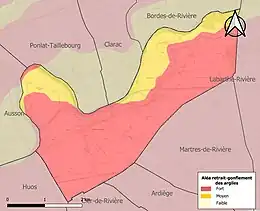 Le retrait-gonflement des sols argileux est susceptible d'engendrer des dommages importants aux bâtiments en cas d’alternance de périodes de sécheresse et de pluie. La totalité de la commune est en aléa moyen ou fort (88,8 % au niveau départemental et 48,5 % au niveau national). Sur les 360 bâtiments dénombrés sur la commune en 2019, 360 sont en aléa moyen ou fort, soit 100 %, à comparer aux 98 % au niveau départemental et 54 % au niveau national. Une cartographie de l'exposition du territoire national au retrait gonflement des sols argileux est disponible sur le site du BRGM[30],[Carte 2].