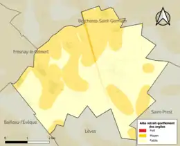 Le retrait-gonflement des sols argileux est susceptible d'engendrer des dommages importants aux bâtiments en cas d’alternance de périodes de sécheresse et de pluie. 47,7 % de la superficie communale est en aléa moyen ou fort (52,8 % au niveau départemental et 48,5 % au niveau national). Sur les 170 bâtiments dénombrés sur la commune en 2019, 7 sont en aléa moyen ou fort, soit 4 %, à comparer aux 70 % au niveau départemental et 54 % au niveau national. Une cartographie de l'exposition du territoire national au retrait gonflement des sols argileux est disponible sur le site du BRGM[16],[Carte 2].