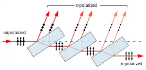 La façon la plus simple d'en réaliser consiste en une série de lames de verre orientées à l'angle de Brewster par rapport au faisceau. À cet angle, valant environ 57° pour le verre, la lumière polarisée p (c'est-à-dire parallèlement au plan d'incidence, vient de parallel, « parallèle » en allemand) n'est pas réfléchie par le verre et 84 % de la lumière polarisée s (perpendiculairement au plan d'incidence, vient de senkrecht, « perpendiculaire » en allemand) est transmise (16 % est réfléchie). Chaque lame de verre réfléchit deux fois la lumière (à l'entrée et à la sortie).