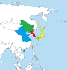 La première action du Japon est de conquérir les îles Ryūkyū en 1879. Ensuite, la Japon gagne la première guerre sino-japonaise et annexe Formose et les îles Pescadores en 1895. Le Japon installe également un État fantoche en Corée après la rébellion paysanne du Donghak puis annexe le pays en 1910.