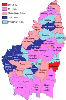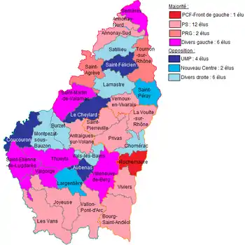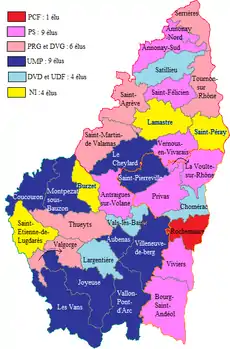 - Cet article est partiellement ou en totalité issu de l'article intitulé « Vie politique en Ardèche de 1997 à 2011 » (voir la liste des auteurs).