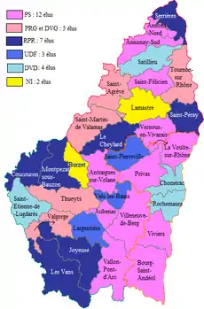 - Cet article est partiellement ou en totalité issu de l'article intitulé « Politique en Ardèche de 1968 à 1980 » (voir la liste des auteurs).