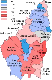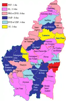 - Cet article est partiellement ou en totalité issu de l'article intitulé « Politique en Ardèche de 1981 à 1996 » (voir la liste des auteurs).