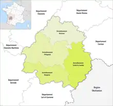 Le département français de la Dordogne est un département créé le en application de la loi du , à partir de l'ancienne province de Guyenne. Les 503 actuelles communes, dont presque toutes sont regroupées en intercommunalités, sont organisées en 25 cantons permettant d'élire les conseillers départementaux. La représentation dans les instances régionales est quant à elle assurée par 15 conseillers régionaux. Le département est également découpé en 4 circonscriptions législatives, et est représenté au niveau national par quatre députés et deux sénateurs.