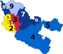 Circonscriptions et affiliations à l'issue des élections de 2022.