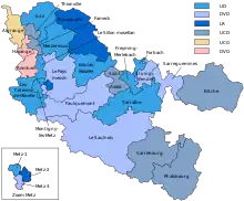 Pour autant, la gauche mosellane n'est pas sans avoir un certain nombre de positions, notamment dans l'ancien arrondissement de Thionville-Ouest qui, dans le prolongement du Pays Haut du Nord du département voisin de Meurthe-et-Moselle, s'est consacré historiquement aux activités de production sidérurgique. Le prolétariat des usines de la métallurgie a constitué la base politique de la gauche.