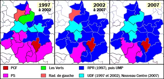 | Députés | 12 (UMP), 2 (NC) | '8' (PS), '1' (PCF) |
