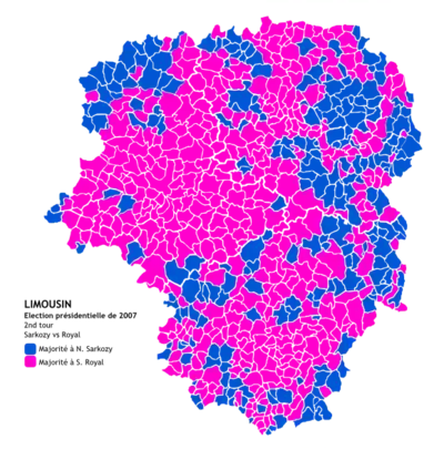 Il s'agit ainsi d'une des rares régions de France métropolitaine à avoir toujours majoritairement voté à gauche tout au long de la Cinquième République, étant la seule à avoir été toujours dirigée par une majorité de gauche au Conseil régional. Le Parti socialiste y occupe une position hégémonique, en dépit de bons scores de la droite républicaine sous l'influence de Jacques Chirac, député de Corrèze puis président de la République, et de la gauche radicale (« communisme rural » typique des régions déchristianisées de l'ouest du Massif central[5]), notamment sur le plateau de Millevaches et communisme urbain dans les anciens pôles industriels ouvriers que sont Limoges, Tulle ou Saint-Junien. Le destin présidentiel de François Hollande, également élu corrézien, a considérablement mais ponctuellement amoindri l'influence de la droite républicaine en Limousin, qui conserve des fiefs, en Haute-Corrèze et en Creuse notamment, voire en conquiert au gré des difficultés rencontrées par la gauche à l'échelle nationale.