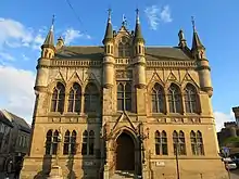 Inverness Town House, un édifice du gouvernement local à Inverness, la principale ville du council area de Highland. - 1974-1979 : La décentralisation a dominé cette période: le gouvernement travailliste a tenté de faire adopter une loi sur la décentralisation, sur la base des recommandations de la Commission Kilbrandon, et ce contre une forte opposition, notamment de la part de ses propres députés d'arrière-ban. Enfin, le référendum a bien été gagné par une courte majorité en faveur d'une assemblée écossaise élue, mais n'a pas réussi à obtenir un taux de participation de 40% de l'électorat total, une condition fixée dans la loi. Lors de l'élection générale de 1979, le SNP a réalisé une mauvaise performance, chutant à 17 % des voix et 2 sièges. Les travaillistes ont bien réussi en Écosse, mais dans l'ensemble du Royaume-Uni, Margaret Thatcher a conduit les conservateurs à une victoire décisive.