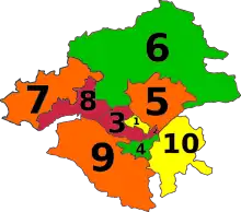 À la suite du redécoupage des cantons de 2014, les circonscriptions législatives ne sont plus composées de cantons entiers mais continuent à être définies selon les limites cantonales en vigueur en 2010. Les circonscriptions sont ainsi composées des cantons actuels suivants :