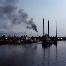 La faiblesse du tissu industriel dans la région du bassin explique un impact faible de ce secteur dans la pollution fluviale. Il existe néanmoins, comme l'illustre le poids des teintureries : au début des années 2010, il était estimé qu'à Bamako, 16 000 mètres par cube d'effluents par an étaient rejetés à même le sol, dans les égouts ou directement dans le fleuve[8]. Avec moins de 10 % des industries retraitant leurs effluents avant leurs rejets dans les cours d'eau, le Nigeria, qui dispose d'une industrie lourde et notamment pétrolifère dans le delta du Niger, est confronté à une importante pollution des eaux de surface pour cette raison[9].
