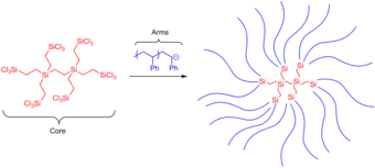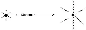 Deux stratégies différentes peuvent être utilisées pour synthétiser des polymères en étoile[5].