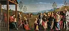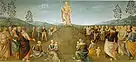 Les délais imposés par les moines commanditaires de l'œuvre étant très strictes, la prédelle a été réalisée par ses assistants d'atelier d'après un dessin du maître.
