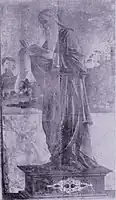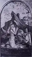 Les personnages sont peints sur un fond de collines rocheuses, sans traitement unitaire du paysage basé sur la perspective géométrique, mais, comme dans les œuvres de Gentile Bellini, avec une série de blocs séparés.